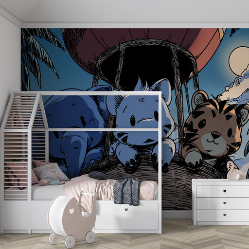 KidsWallEmbarquez votre enfant dans une aventure nocturne avec ce papier peint pour enfants qui réunit des animaux adorables au cœur d'une jungle féerique....