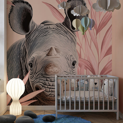 KidsWallAjoutez une touche de magie à la chambre de votre enfant avec ce papier peint pour enfants représentant un adorable rhinocéros émergent au milieu d...
