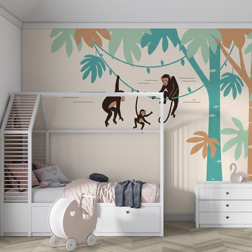 KidsWallTransformez la chambre de votre enfant en un véritable espace d'aventure avec ce papier peint chambré pour enfants, mettant en scène un petit singe...