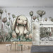 Papier peint chambre bébé | Lapin mignon au milieu des fleurs délicates