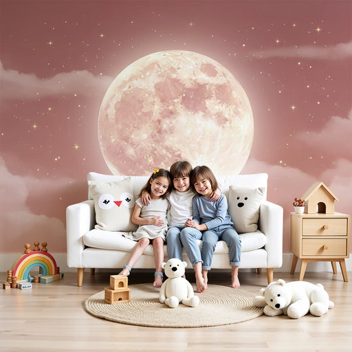 KidsWallTransformez la chambre de votre bébé en un véritable ciel nocturne avec ce papier peint pour bébé. Une lune rose majestueuse émerge doucement au-de...