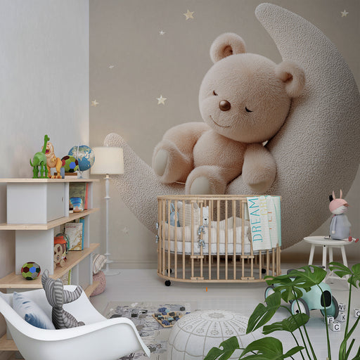 KidsWallCréez un univers doux et apaisant dans la chambre de votre bébé avec ce papier peint pour bébé représentant un adorable ourson endormi sur un crois...
