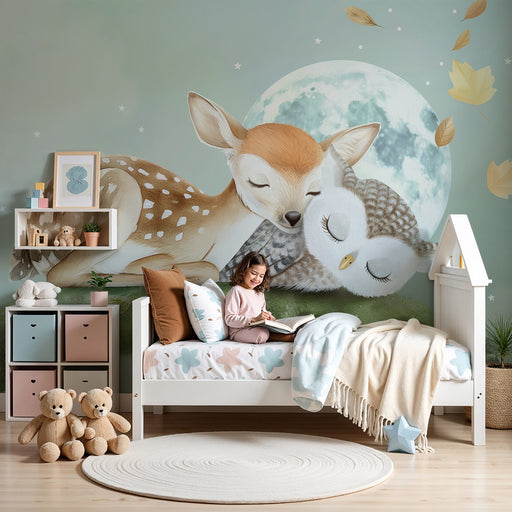 KidsWallCréez un univers doux et apaisant dans la chambre de votre bébé avec ce papier peint pour bébé illustrant un renard et un hibou paisiblement endorm...
