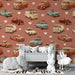 Sur un fond aux teintes chaudes, ce papier peint rétro crée une atmosphère nostalgique et ludique dans la chambre. Idéal pour nourrir l'imagination et les rêves d'aventures d'un jeune explorateur.