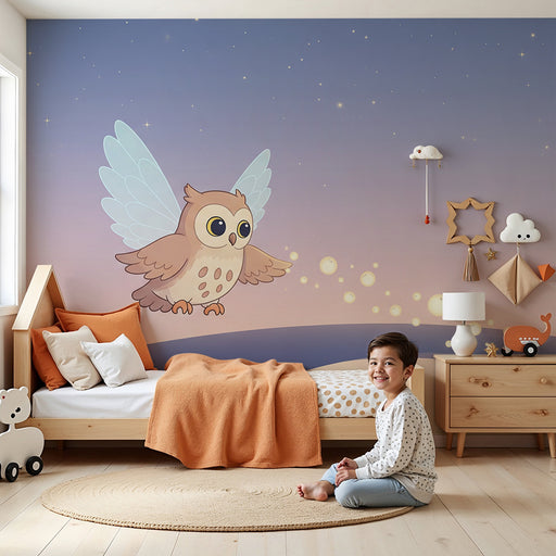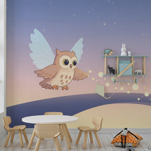 KidsWallTransformez la chambre de votre bébé en un univers magique avec ce papier peint pour bébé représentant un hibou adorable aux ailes scintillantes, p...