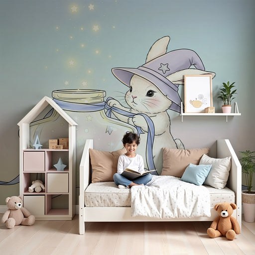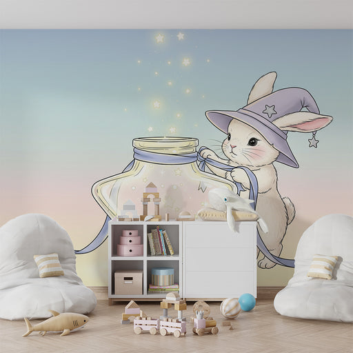 KidsWallPlongez dans un monde féerique avec ce papier peint pour bébé mettant en scène un adorable lapin portant un chapeau de magicien. Ce petit compagnon...