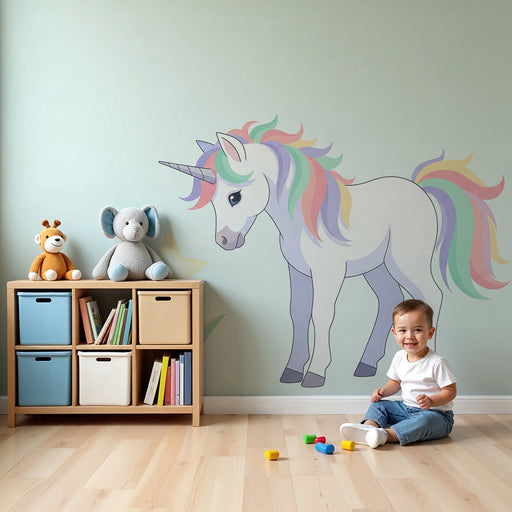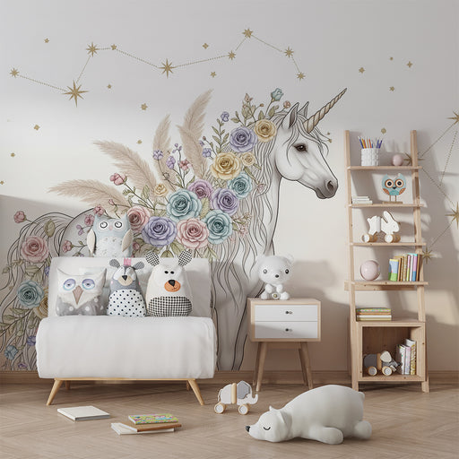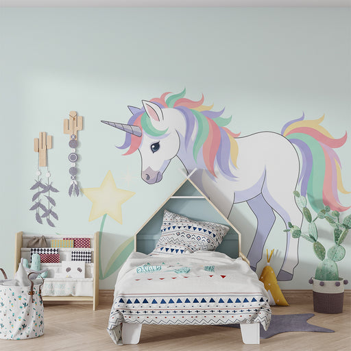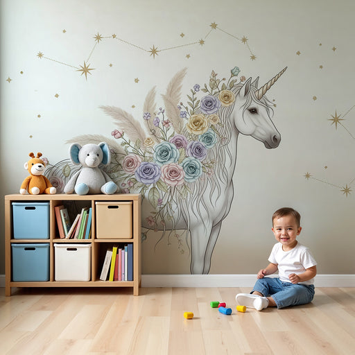 KidsWallEntrez dans un monde magique avec notre papier peint licorne, parfait pour créer une ambiance féerique dans une chambre d'enfant ou une salle de je...