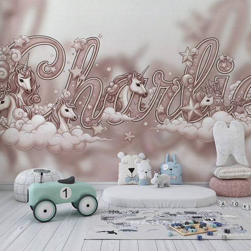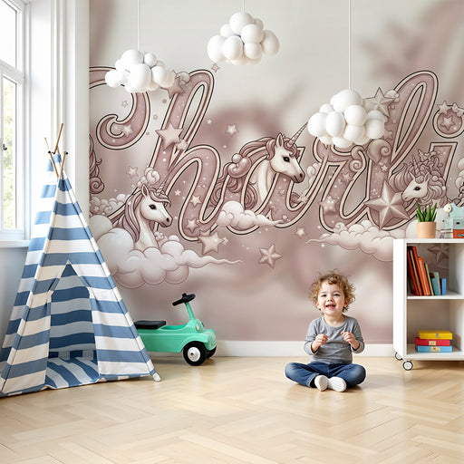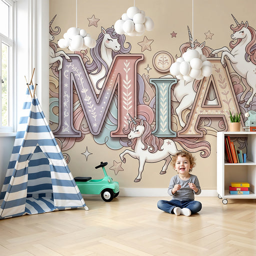 KidsWallAjoutez une touche magique à la chambre de votre bébé avec ce papier peint pour bébé illustrant des lettres ornées de délicates licornes et de papi...
