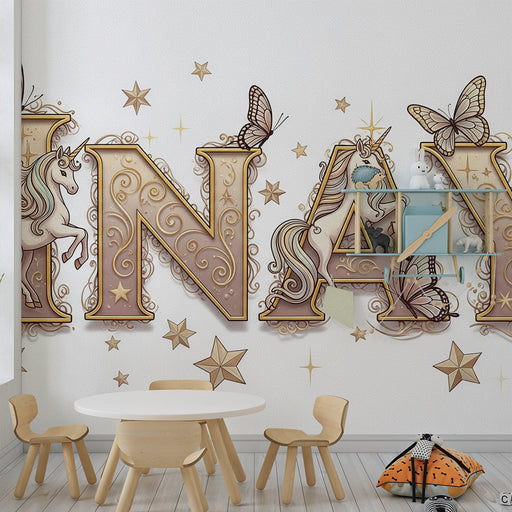 Papier peint chambre bébé | Lettres décoratives avec licorne et papillons
