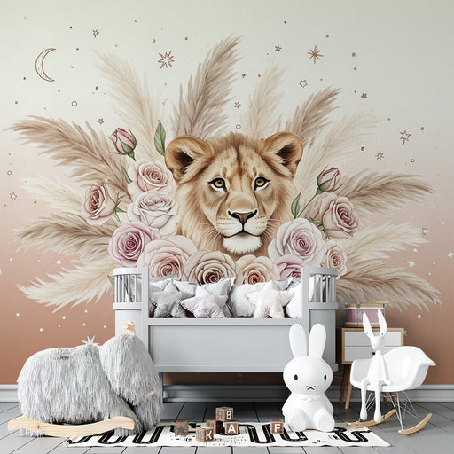 KidsWallTransformez la chambre de votre bébé en un espace enchanteur avec ce papier peint pour bébé représentant un adorable lionceau entouré de roses déli...