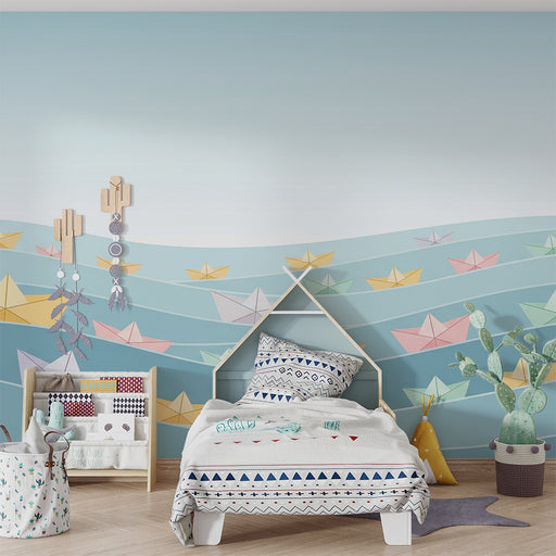 Afficher tous les détailsPapier peint chambre bébé | Bateaux en papier colorés sur des vagues apaisantes