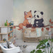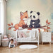 Papier peint chambre bébé | Renard et panda mignons sur une branche entourés de fleurs