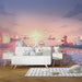 Transformez la chambre de votre enfant en un monde féerique avec ce papier peint pour enfants représentant une scène magique au bord de l'eau. Un panda curieux navigue paisiblement dans sa barque, tandis qu'un renard et un lapin profitent de la beauté du coucher de soleil, entourés de lanternes flottantes et de pétales colorés.