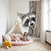 Ajoutez une touche de charme et de curiosité à la chambre de votre enfant avec ce papier peint pour enfants illustrant un adorable raton laveur qui guette derrière un arbre. Cette scène captivante stimule l'imagination et apporte une ambiance ludique à l'espace.