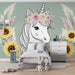 Transformez la chambre de votre bébé en un véritable royaume féerique avec ce papier peint pour bébé mettant en scène une magnifique licorne ornée d'une couronne de fleurs. Cette illustration délicate, entourée de tournesols éclatants et de plumes douces, crée une ambiance magique et apaisante.