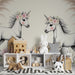 Transformez la chambre de votre bébé en un royaume enchanté avec ce papier peint pour bébé mettant en scène de magnifiques licornes. Ces créatures féeriques, ornées de couronnes de fleurs, gambadent joyeusement au milieu d'un décor floral doux et apaisant. Un design qui stimule l'imagination et invite à la rêverie.
