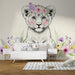 Papier peint chambre bébé | Lionceau tout mignon avec fleurs