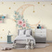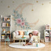 Papier peint chambre bébé | Lune étoilée et fleurs délicates