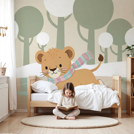 KidsWallTransformez la chambre de votre enfant en un véritable havre de paix avec ce papier peint pour enfants illustrant une scène charmante de la savane....