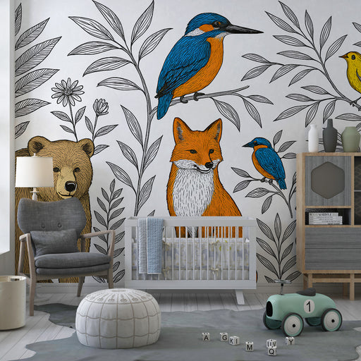 Papier peint chambre enfant | Jolis animaux de la forêt et nature sauvage