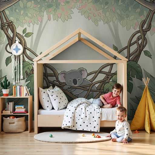 KidsWallDécouvrez un univers enchanteur avec ce papier peint pour enfants représentant un adorable koala caché entre les arbres majestueux. Ce décor captiv...