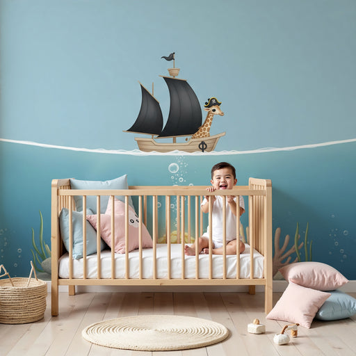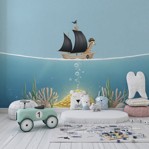 KidsWallTransformez la chambre de votre enfant en un véritable aventure maritime avec ce papier peint pour enfants mettant en scène une adorable girafe pir...