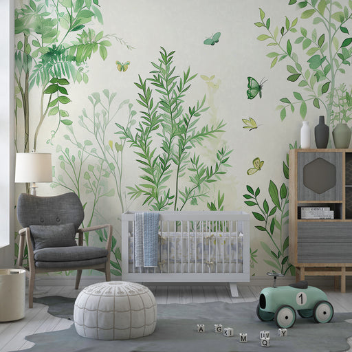 KidsWallPapier peint chambre enfant | Forêt enchantée aux papillons et feuillage verdoyant