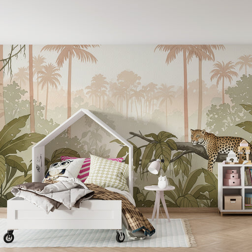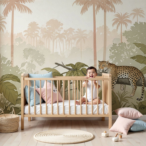 KidsWallTransformez la chambre de votre enfant en une aventure sauvage avec ce papier peint pour enfants aux motifs de léopards explorant une jungle luxuri...
