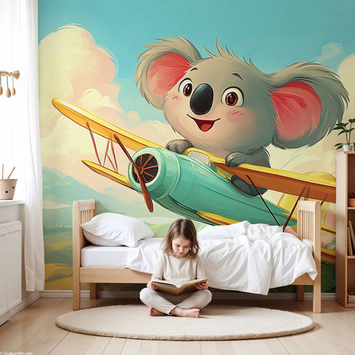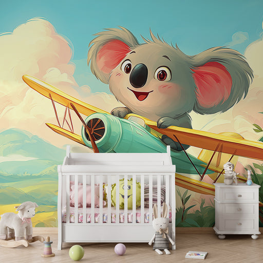 KidsWallTransformez la chambre de votre enfant en un véritable ciel d'aventure avec ce papier peint pour enfants illustrant un adorable koala aux commandes...