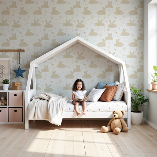 KidsWallTransformez la chambre de votre bébé en un cocon apaisant avec ce papier peint pour bébé, mettant en scène un adorable lapin paisiblement suspendu ...