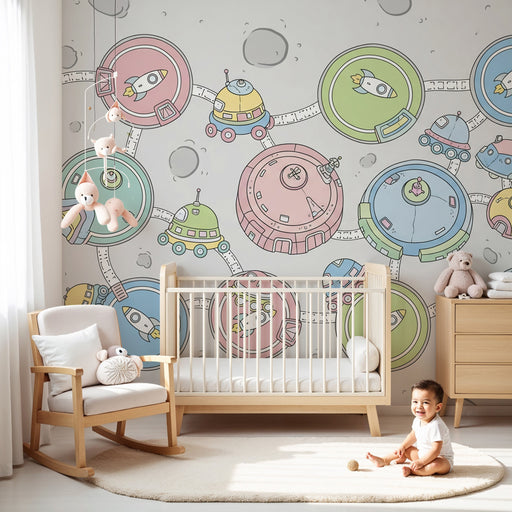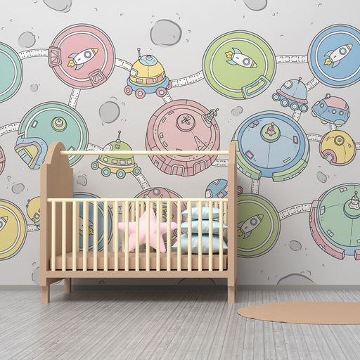 KidsWallTransformez la chambre de votre enfant en une véritable station spatiale avec ce papier peint enfant coloré représentant une aventure dans l'espace...
