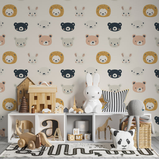 Apportez une touche joyeuse et ludique à la chambre de votre enfant avec ce papier peint pour chambre d'enfant, orné de petites têtes d'animaux ado...