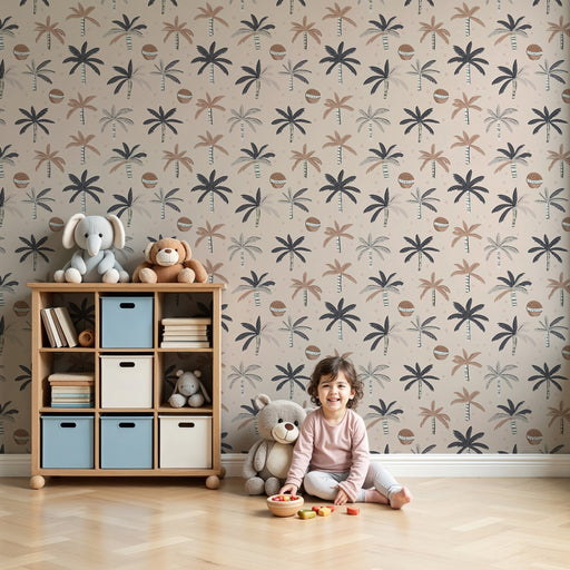KidsWallTransformez l'espace de votre enfant avec ce papier peint charmant, où des palmiers délicatement illustrés se dressent sur un fond pastel doux. Les...