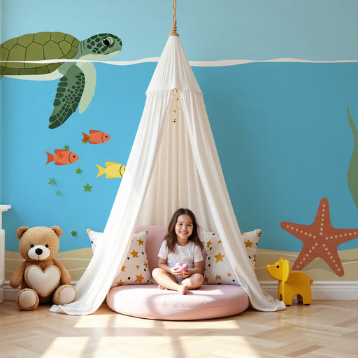 KidsWallPlongez dans un univers aquatique féérique avec ce papier peint pour enfants inspiré des merveilles de l'océan. Une tortue marine curieuse émerge e...