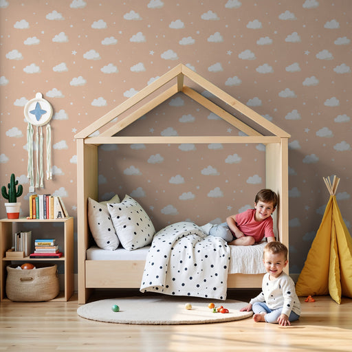 KidsWallCréez un havre de paix pour votre enfant avec ce papier peint pour chambre d enfant, orné de nuages moelleux et de croissants de lune sur un fond r...