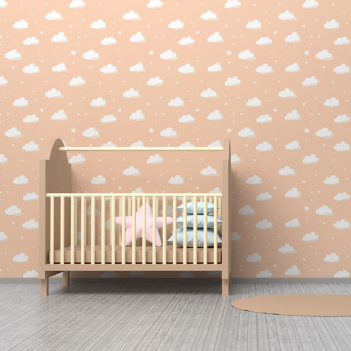 Papier peint chambre enfant à motifs | Nuages doux sur fond pêche