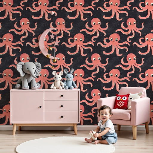 KidsWallTransformez la chambre de votre enfant en un univers marin fascinant avec ce papier peint à motif de pieuvres. Chaque pieuvre, souriante et colorée...