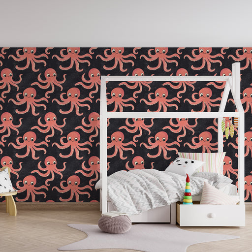Papier peint chambre enfant à motifs | Pieuvres amusantes sur fond sombre