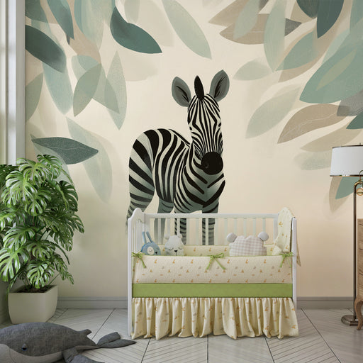 Afficher tous les détailsPapier peint chambre enfant | Petit zèbre et feuillage