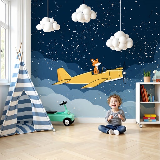 Kinderzimmer Tapete | Abenteuer am Himmel mit einem Pilotfuchs