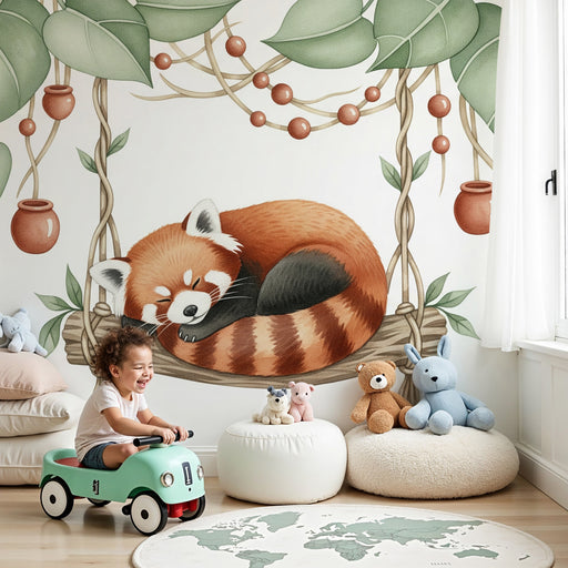 Tapeta dětského pokoje | Spící rudý panda v džungli