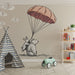 Dětská pokojová tapeta | Medvěd a zajíc na padáku