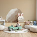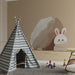 Přidejte do dětského pokoje svého dítěte dotek něhy a fantazie s tímto tapetou do dětského pokoje, která zobrazuje roztomilého zajíce schovaného za kamenem. Tento minimalistický design vytváří klidnou atmosféru ideální pro dobrodružné sny a objevování.