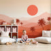 Dětská pokojová tapeta | Monochromatická pouštní krajina s palmami a zapadajícím sluncem