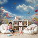 Přiveďte krásu přírody do dětského pokoje s naší tapetou s květinovou loukou a motýly. Tento okouzlující design přináší mnoho barevných květů a létajících motýlů pod jasnou modrou oblohou.