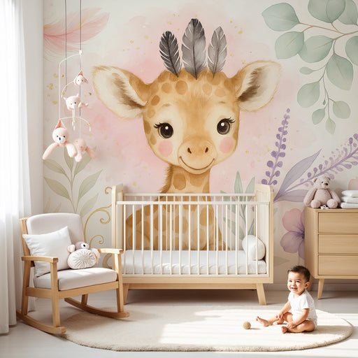 Zobrazit celý detailTapeta dětského pokoje | Rozkošná žirafa a něžné květiny
