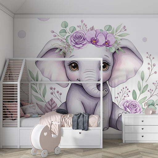 KidsWallPřineste do dětského pokoje vašeho miminka jemnost a něhu s tímto papírovým tapetou pro děti, která zobrazuje roztomilého slona s korunou květů. Te...
