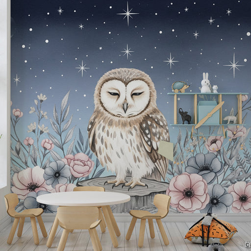 KidsWallPonořte se do tajemství a kouzla s tímto tapetou do dětského pokoje, která zobrazuje majestátní sovu uprostřed třpytivé noční oblohy. Osvětlená ja...