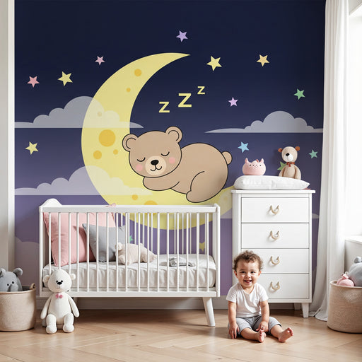 KidsWallProměňte pokoj vašeho miminka v oázu něhy s tímto papírovým tapetou pro děti, které zobrazuje roztomilého medvídka sedícího na půlměsíci. V hvězdné...
