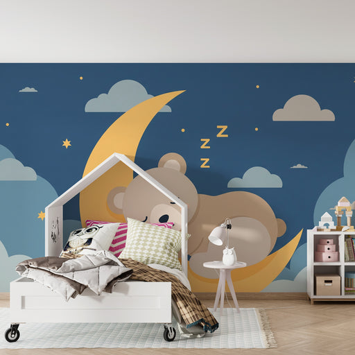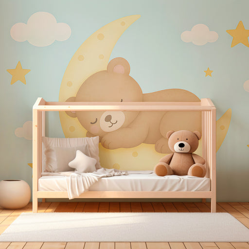 KidsWallProměňte pokoj vašeho dítěte v jemné hnízdo s tímto papírovým tapetou pro děti, které zobrazuje roztomilého medvídka klidně spícího na půlměsíci. U...